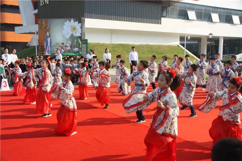 三(1)班全體學(xué)生身穿漢服,表演《孔子爺爺》